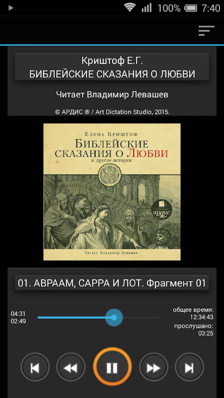스튜디오 "아디스"에 기록 된 오디오 북은 "사랑과 다른 이야기에 대한 성경"책 [2001]의 첫 9 장 입력 - "아브라함, 사라와 부지", "이삭의 신부 ','야곱과 라헬을", "납치 디나 ","요셉과 그의 형제 ","출애굽기 ","여호수아 ","이스라엘 판단한다. "