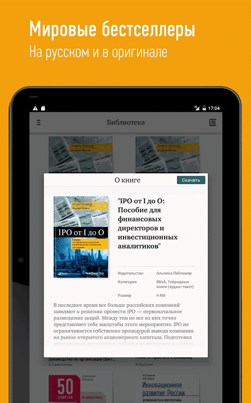 Библиотека "РосЕвроБанк" ― это коллекция книг охватывающая самые актуальные темы и проблемы современного бизнеса. Она открывает доступ к сотням книг по главным направлениям деловой и научно-популярной литературы в электронном виде. Книги издательств Альпина Паблишер, Альпина Нон-фикшн и Интеллектуальная литература можно читать с любого устройства и в любое удобное время, даже без активного интернет-соединения.
