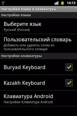 상자 "Buryad 키보드"를 확인 2. 표준 안드로이드 메시지에 동의