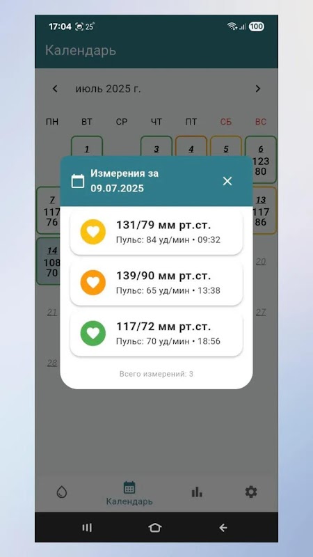 ✔ 분석 기능이 포함된 캘린더 - 하루 평균 혈압을 확인하고 혈압 변화를 추적하세요.