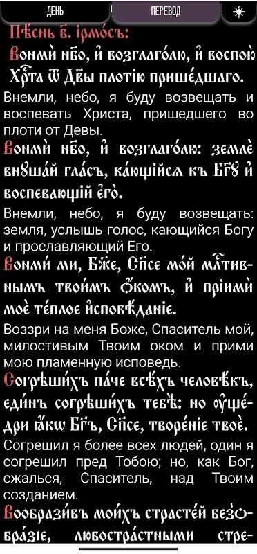 크레타의 안드레이의 정경을 읽기 위한 간단한 응용 프로그램입니다. 정경은 사순절 첫 주의 정교회 예배의 필수적인 부분으로 널리 알려져 있습니다.