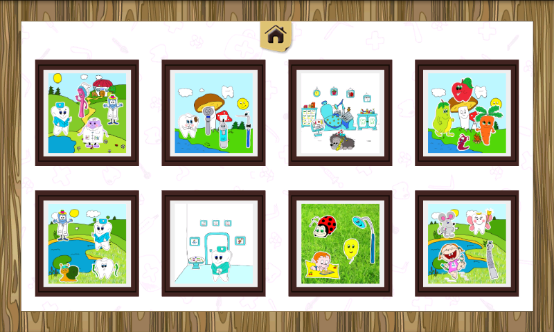 다른 연령대에 의사 치아에 대한 책의 문자와 함께 재미있는 교육 퍼즐.