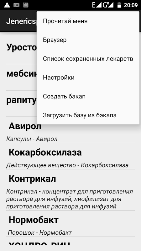 이 프로그램은 오직 정보를 제공하기위한 것입니다. 어떤 약물의 사용을 시작하기 전에 의사와 상담해야하며, 사용에 대한 지침에 익숙해. 저자는 디렉토리에 위치 정보의 사용으로 인한 결과에 대해 책임을지지 않습니다. 개방형 인터넷 소스에서 가져온 의약품에 대한 모든 정보를 제공합니다.