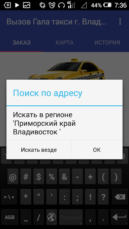 응용 프로그램은 택시 갈라 블라디보스토크를 호출하는 스마트 폰을하실 수 있습니다