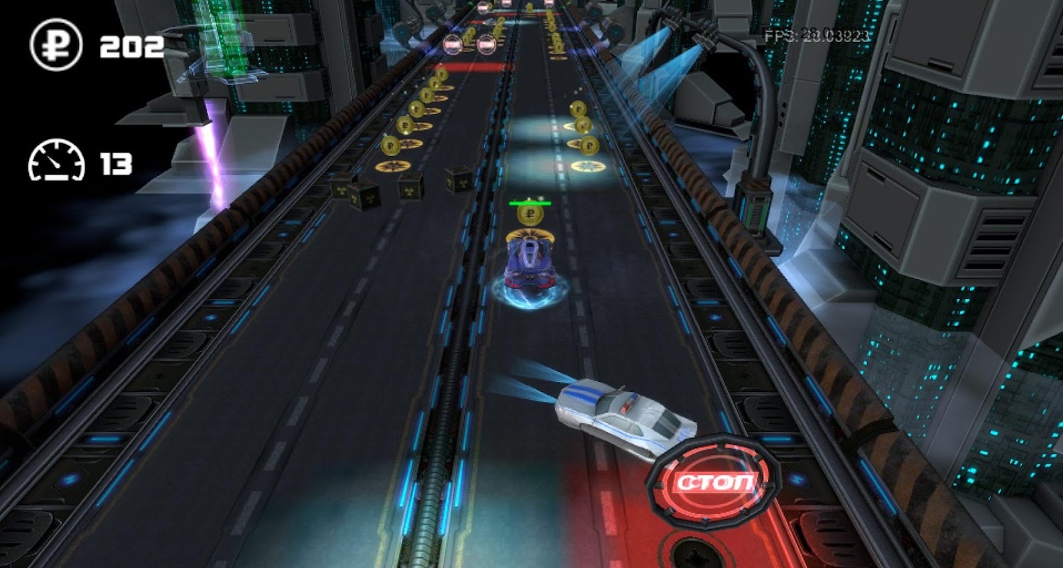 Участвуй в увлекательной гонке! Объезжай препятствия и собирай монетки, на которые сможешь приобрести новый, еще более крутой суперкар.