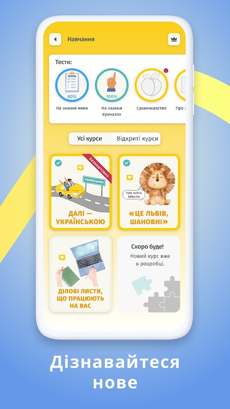 우리는 언어를 즐길 수 있고 즐길 수 있다는 것을 알고 있기 때문에 이 모바일 앱 "Let's do text"를 개발했습니다. 그것으로 매일 우크라이나어와 사랑에 빠질 수 있습니다.
