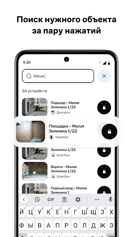 :clipboard: 사용 가능한 객체 목록: 사용 가능한 모든 주소와 접근 지점(현관, 차단기, 지하실)이 편리한 목록에 표시됩니다.