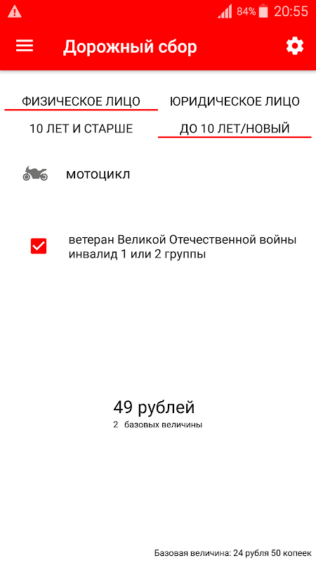 Приложение рассчитывает сумму дорожного сбора, как вида государственной пошлины, взимаемой при выдаче разрешения на допуск транспортного средства к участию в дорожном движении в Республике Беларусь.