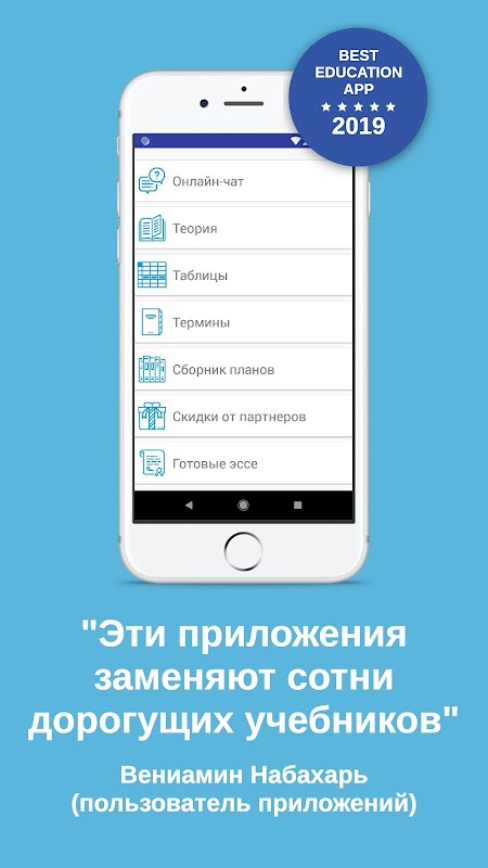 Не забудь посмотреть наши другие приложения: ЕГЭ Русский язык + итоговое сочинение 2020, ЕГЭ Математика 2020, ЕГЭ Обществознание 2020, ЕГЭ История 2020, ЕГЭ Биология 2020, ЕГЭ Физика 2020, ЕГЭ Литература + краткие содержания 2020, ЕГЭ Химия 2020, ЕГЭ Информатика 2020.
