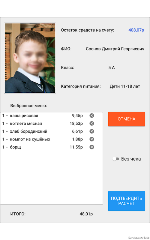 EG11 시스템에 연결된 식당에서 음식 판매 터미널