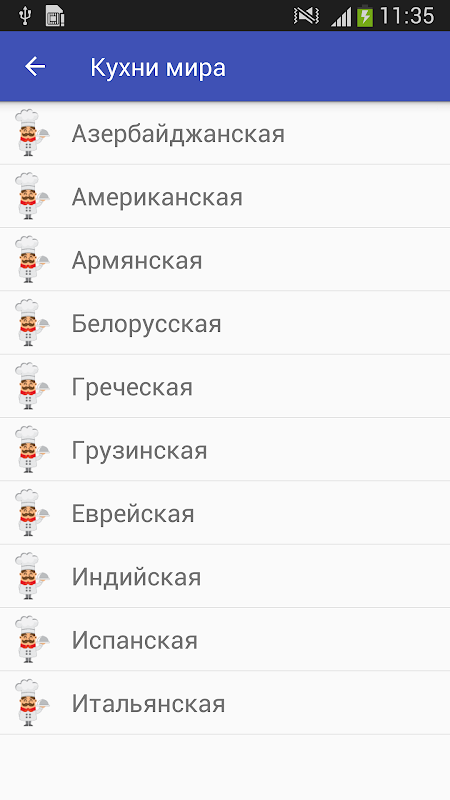 - выбор блюд по национальной кухне: итальянская, китайская, русская, французская