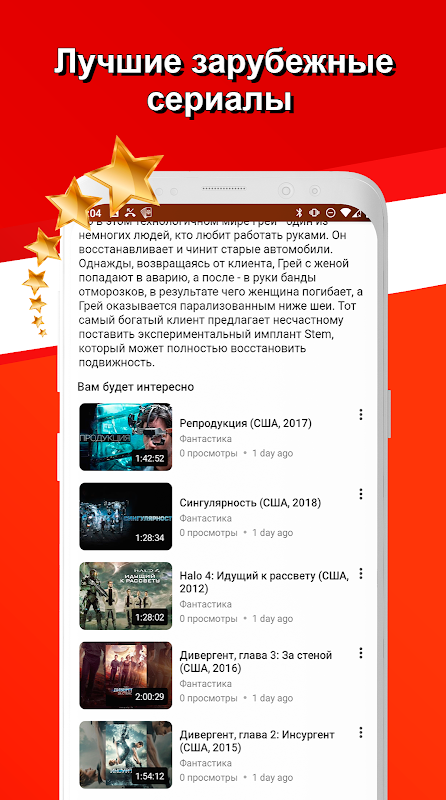 American Movies 애플리케이션과 함께 즐겨 찾기에 추가하여 자신 만의 영화 컬렉션을 만들 수 있습니다. 우리는 귀하의 선호도에 따라 지속적으로 추천을 제공 할 것입니다. 영화가 진행되는 동안 광고는 줄거리의 전개를 방해하지 않으며 Will Smith 또는 다른 좋아하는 배우와 함께 영화를 즐기는 것을 방해하지 않습니다. 중단 한 부분부터 계속 시청하여 영화를 북마크 할 수도 있습니다.