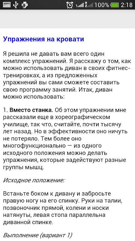 Этот сборник расскажет Вам о плюсах и минусах "диванного" фитнеса, поможет встать с правильной ноги, а так же покажет множество полезных упражнений.