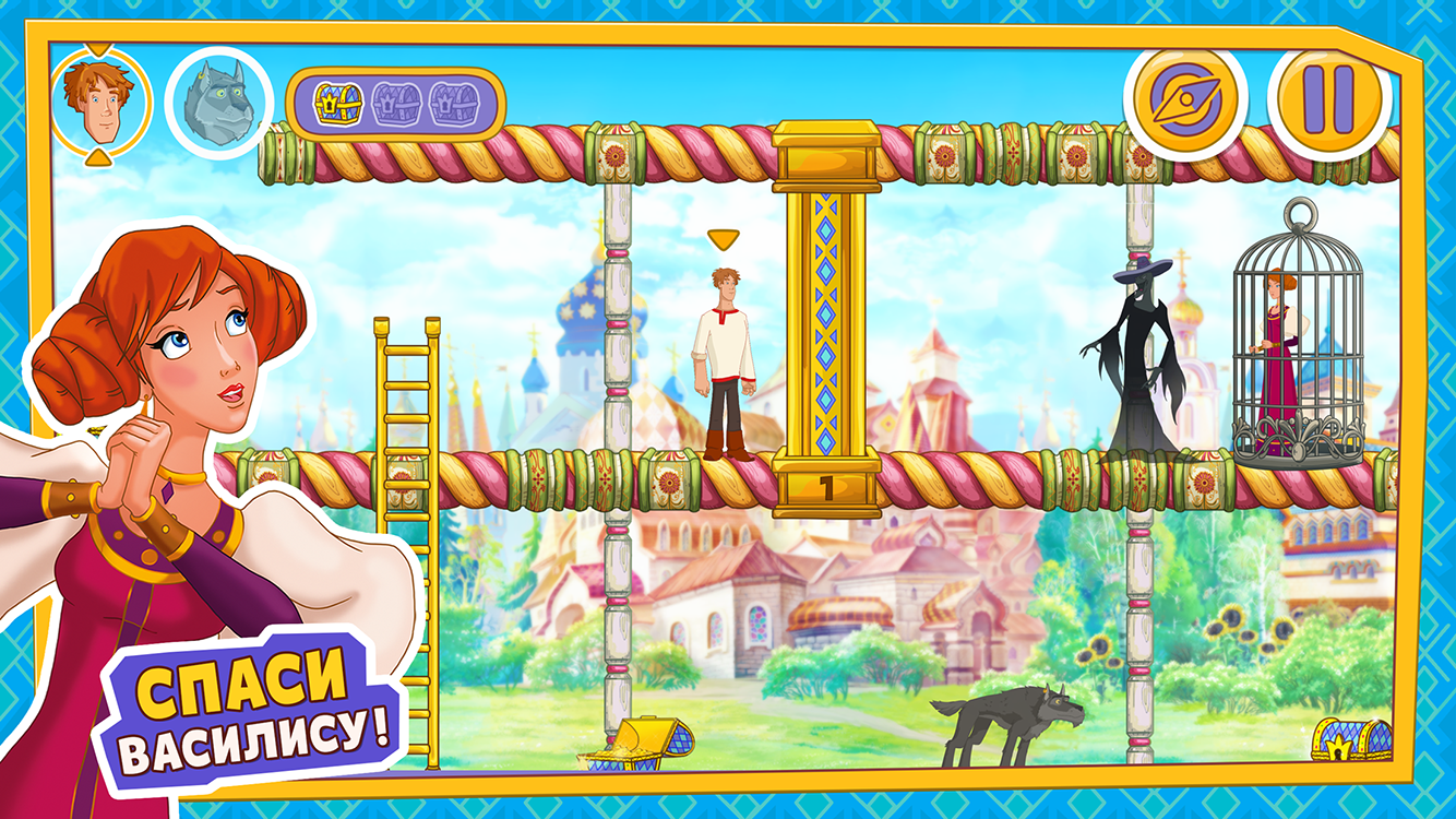 Настоящая героическая головоломка, созданная в тесном партнерстве с кинокомпанией "СТВ" и анимационной студией "Мельница"! Пройди все уровни, спаси Василису и приоткрой завесу тайны над сюжетом мультипликационного фильма "Иван Царевич и Серый волк 3"!
