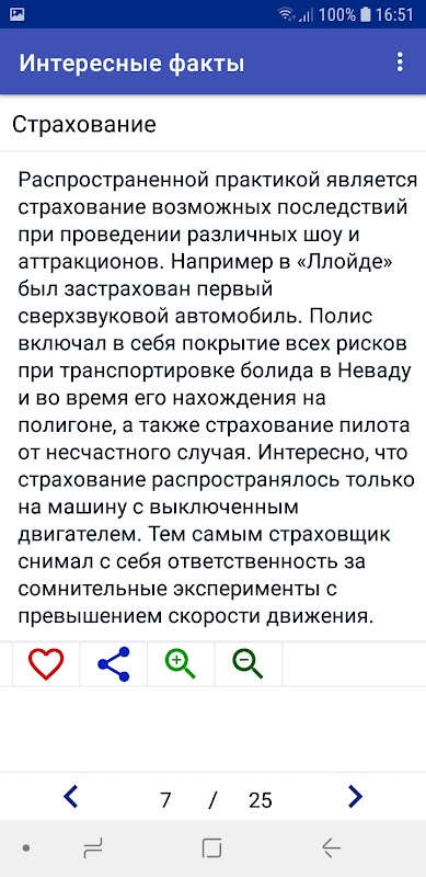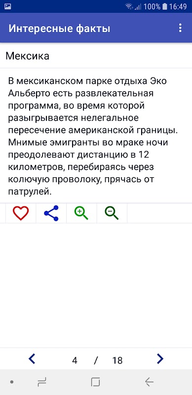 응용 프로그램에는 다양한 주제에 대한 많은 사실이 포함되어 있습니다. 어느 나라가 세계에서 가장 큰지 알고 싶습니까? 우주 깊숙한 곳에 무엇이 있는지 궁금하십니까? 그리고 다른 주의 입법에서 어떤 순간이 미소를 짓게 합니까? 흥미로운 사실 앱에서 이 모든 것과 훨씬 더 많은 것을 찾을 수 있습니다.
