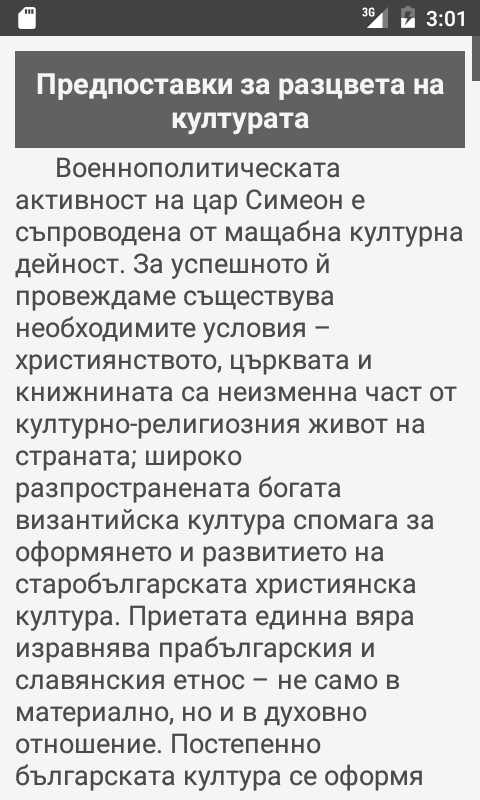 - "Термини" (кратък тълковен речник на основния понятиен апарат, използван през средновековието. Модулът е подходящ за бърз преговор на материала преди явяване на матура/кандидат-студентски изпит)