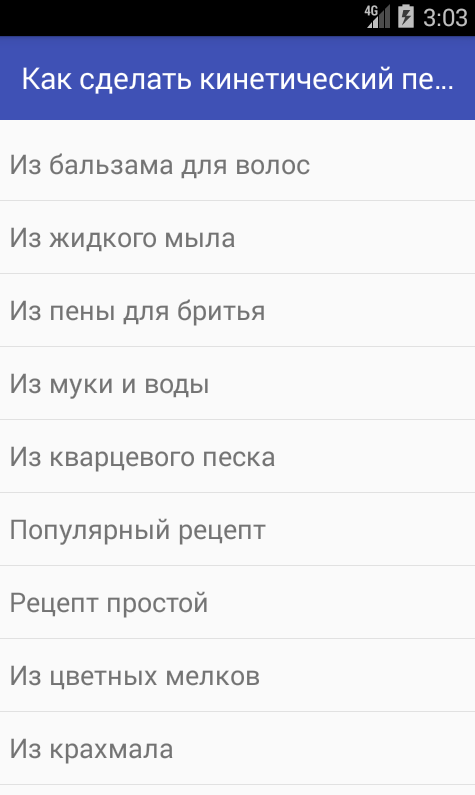 Здесь представлены различные рецепты как сделать кинетический песок на русском языке.