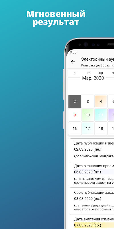 "조달 달력"을 사용하면 지정된 연방법 44-FZ에서 제공하는 이벤트 시기를 쉽게 계산할 수 있습니다.