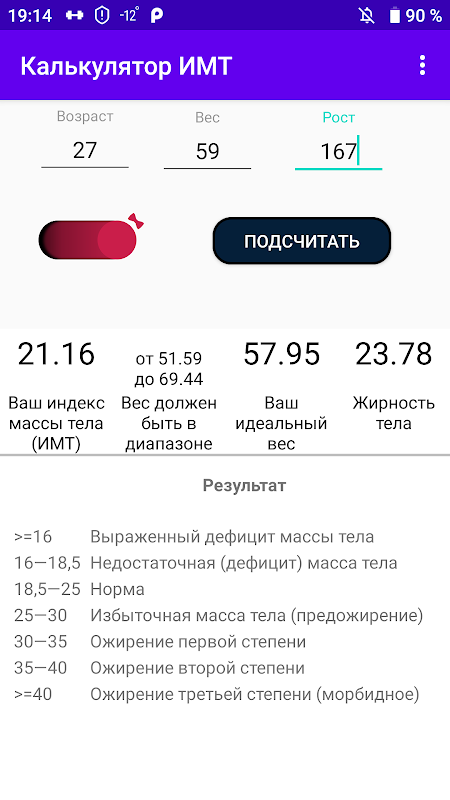 Калькулятор ИМТ расширенный 5.0