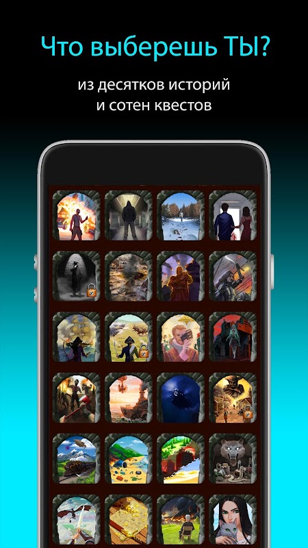 현재이 응용 프로그램은 서양 또는 묵시록, 판타지 및 판타지, 중세 및 공포와 같은 다양한 장르의 수백 가지 퀘스트로 구성된 수십 개의 이야기가 포함되어있어 모든 취향에 맞는 모험을 찾을 수 있습니다!
