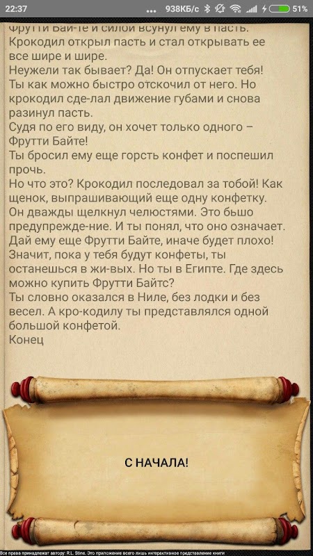 В этом приложении содержатся книги с уникальным форматом - читатель выбирает развитие истории!