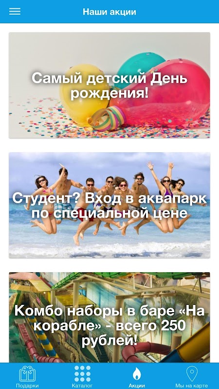 С приложением "ЛИМПОПО Аквапарк" вы сможете следить за количеством накопленных баллов, программой мероприятий и новыми квестами, которые проходят в аквапарке.