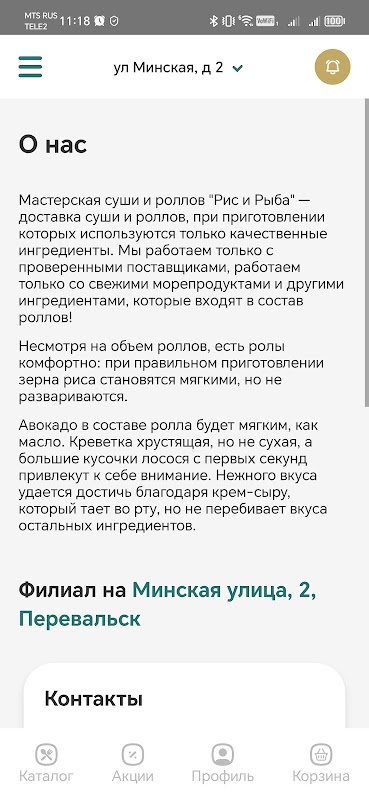 스시와 롤 워크숍 "쌀과 생선"을 위한 모바일 애플리케이션입니다.