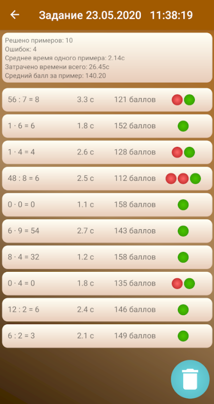 부모 또는 교사는 예제의 수, 유형 및 복잡성, 자녀가 수행하는 작업을 결정하여 작업을 만들 수 있습니다. 각 예, 응답 시간, 시도 횟수 표시와 함께 자세한 결과가 기록에 저장됩니다. 진행 상황을 모니터링하기위한 높은 점수 표도 있습니다.