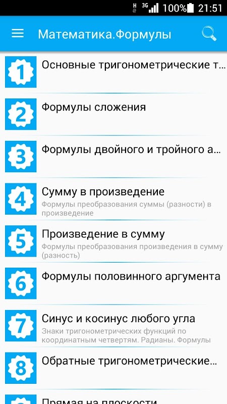 Приложение охватывает большую часть теории из школьного курса математики. Отлично подойдет учащимся в 7 - 11 классах, для выполнения домашнего задания, обучения или повторения и закрепления материала.