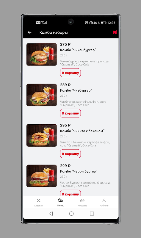 • 버거, 감자튀김, 음료로 구성된 콤보