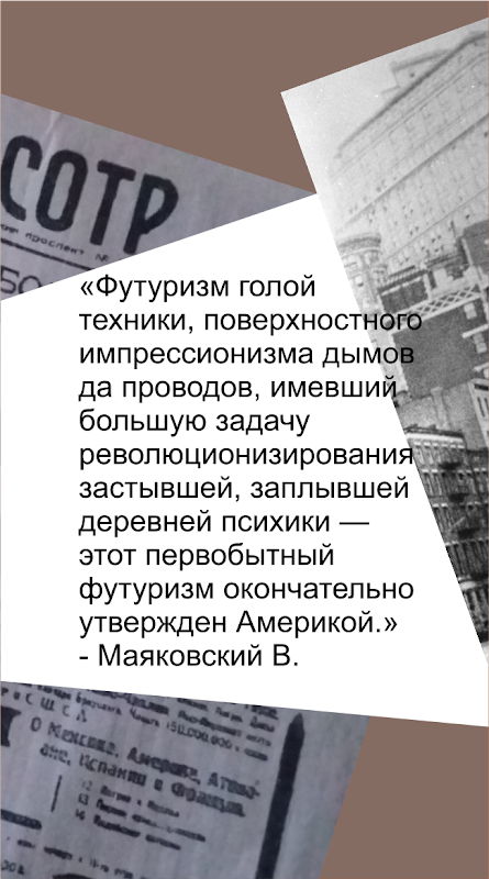 Мое открытие Америки -стихотворный сборник Владимира Маяковского. Сборник Мое открытие Америки выпущен в 1963 году. 1925 году состоялось самое длительное его путешествие: поездка по Америке - будущая тема очерка Мое открытие Америки. Маяковский посетил Гавану, Мехико и в течение трех месяцев выступал в различных городах США с чтением стихов и докладов. Из всех поездок Маяковского за границу - американская - самая значительная не только с точки зрения непосредственных, творческих результатов: двадцать два стихотворения и сборник - Мое открытие Америки.