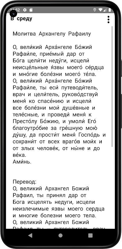 이 애플리케이션의 목적은 기도하는 사람이 매일의 기도 과정을 보다 쉽게 하기 위함이며, 책이나 다른 애플리케이션에서 검색하는 대신 시간을 절약하고 요일에 따라 적절한 기도를 표시할 수 있습니다.