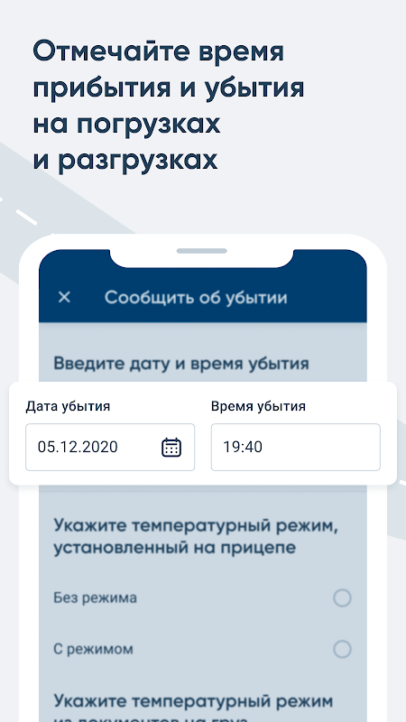 – Самостоятельный ввод данных по прибытии и убытии на погрузках и разгрузках, без лишних звонков от логиста и оператора;