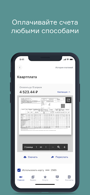 청구서 지불, 신청서 제출, 검침 제출, 총회 및 설문 조사 참여, 회사 알림 수신, 카메라 이미지 보기, 장벽/게이트 열기. 이러한 모든 기능은 애플리케이션에서 구현됩니다.
