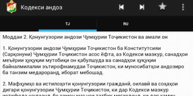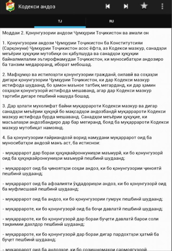 Налоговый Кодекс Республики Таджикистан на платформе Android - приложение, работающее в режиме Off-line, не требует подключения к Интернет и позволит Вам всегда иметь при себе Налоговый кодекс РТ.