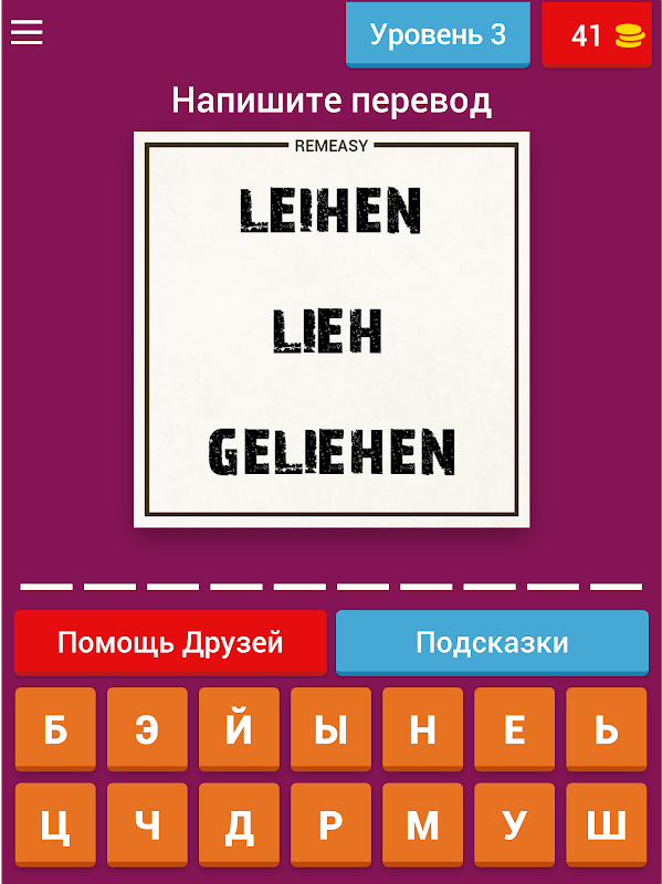 В игровой форме вы сможете изучить и закрепить свои знания по 150 частотным немецким глаголам. Вы можете воспользоваться подсказками при прохождении обучения: