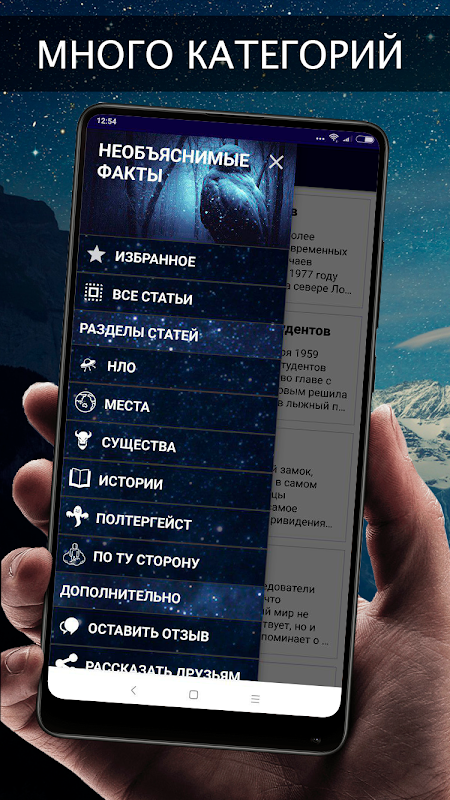 В приложении есть все, что может быть Вам интересно: мистика, инопланетяне, НЛО, полтергейст, привидения, необъяснимое, оборотни, вампиры и многое другое.