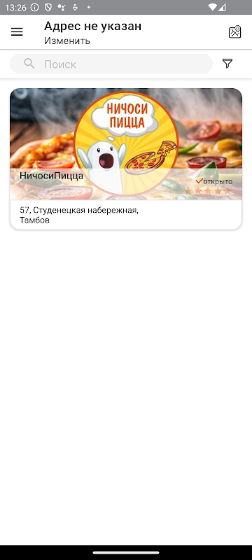 피자 가게 Nichosi Pizza의 응용 프로그램은 다음과 같습니다. 바삭한 크러스트를 곁들인 가장 맛있고 뜨겁고 육즙이 풍부한 피자를 준비합니다. 우리는 고품질의 재료만을 사용하므로 우리 피자는 강력한 맛과 잊을 수 없는 향을 가지고 있습니다. 바삭한 감자, 부드러운 너겟, 차가운 음료 등도 있습니다.