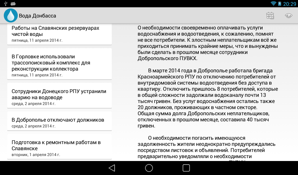 Неофициальный клиент для просмотра новостей коммунального предприятия "Компания "Вода Донбасса".