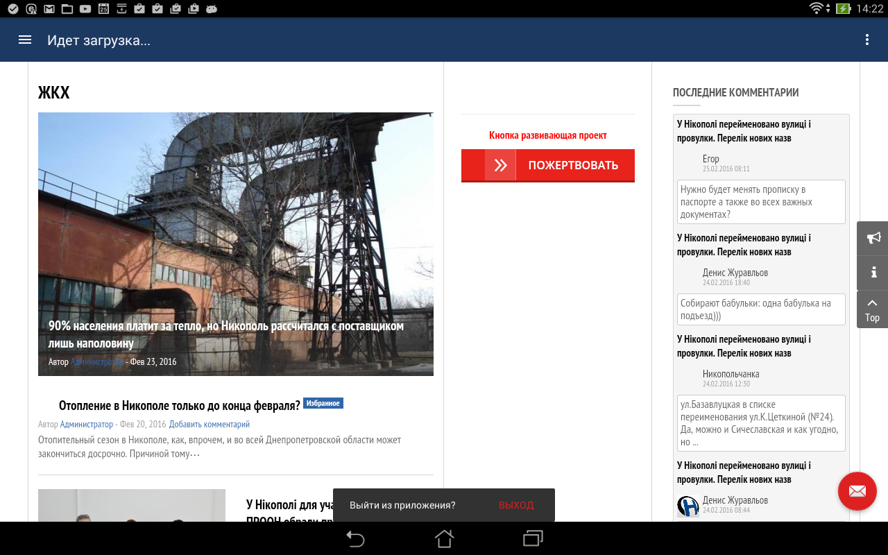 Приложение для комфортного просмотра новостей сайта «Говорит и показывает Никополь» (NikopolNews)