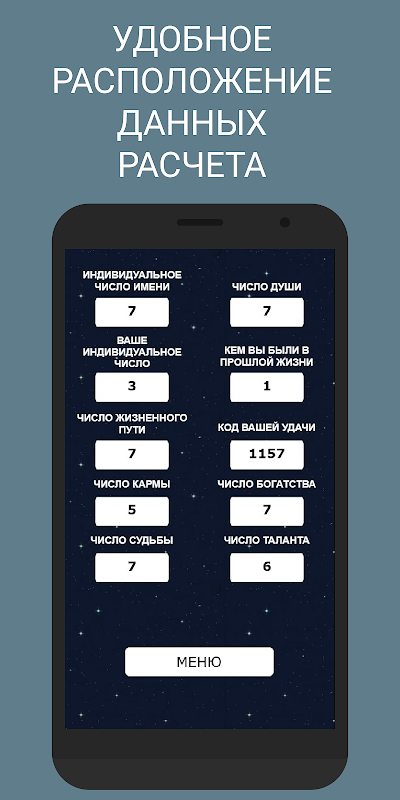 우리 응용 프로그램의 주요 기능은 년, 월, 일에 대한 예측입니다. 생년월일과 이름에 따른 수비학을 사용하면 가까운 미래에 어떤 사건이 기다리고 있는지, 그리고 과거에 누구 였는지 정확하게 예측할 수 있습니다.