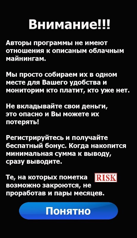 Облачный майнинг без вложений. Мониторинг apk 정보