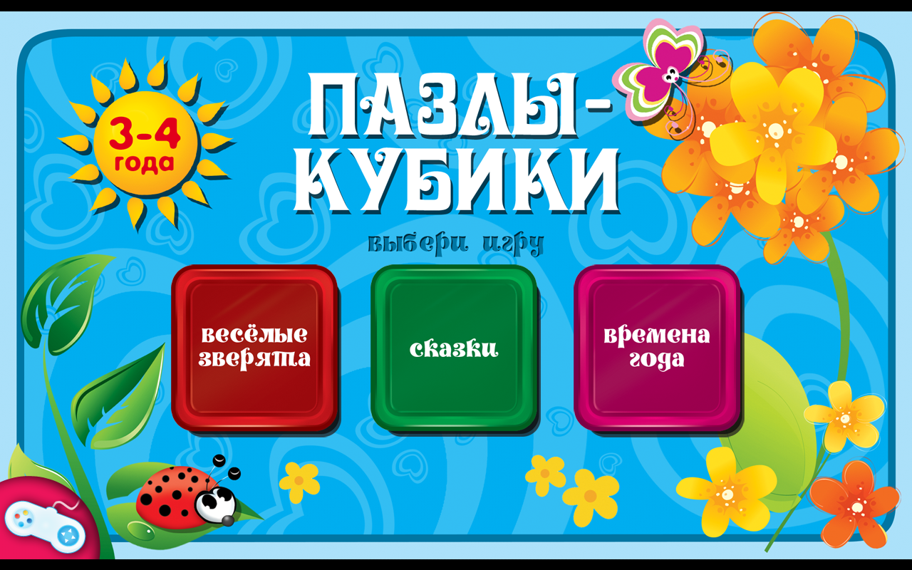 Эта увлекательная игра для развития и обучения состоит из 2-х режимов: «Весёлые зверята» и «Времена года». В режиме «Весёлые зверята» можно собрать из кубиков 10 картинок с изображением различных животных. В режиме «Времена года» можно собрать из кубиков 4 картинки с изображением различных времён года.