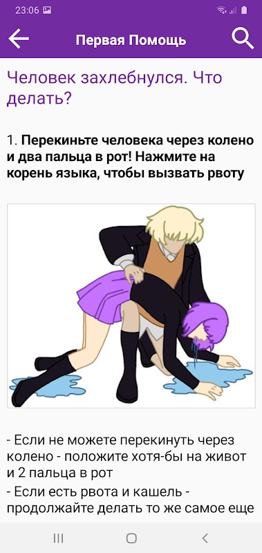 이 응용 프로그램을 신속하게 알파벳 색인이 응급 처치에 대한 지침을 찾을 수 있습니다. 누군가가 손을 부러 뜨 예를 들어, 신속하게 단어 "팔이 부러"또는 설명서 열 수 있습니다 "부러진 팔을." 지침는 크고 분명하게 있습니다. 필요한 경우 - 사진이 있습니다.