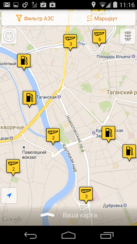 • Составить оптимальный маршрут – с учетом пробок и возможностью выбора заправок с минимальными ценами
