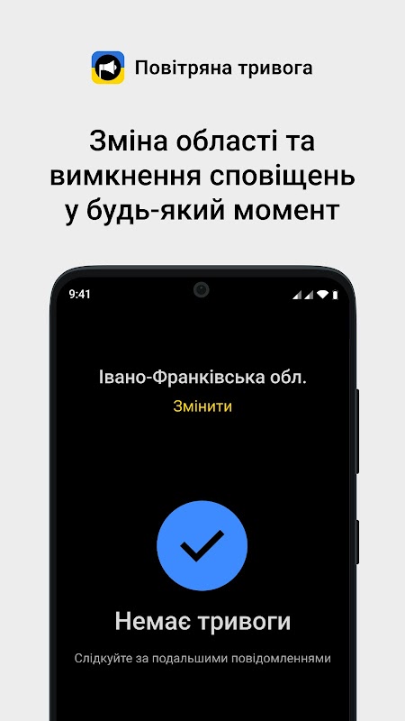 Air Alarm 앱을 설치하면 민방위 시스템에서 우크라이나의 선택한 도시 또는 지역에 대한 항공 경보 알림을 즉시 수신할 수 있습니다.