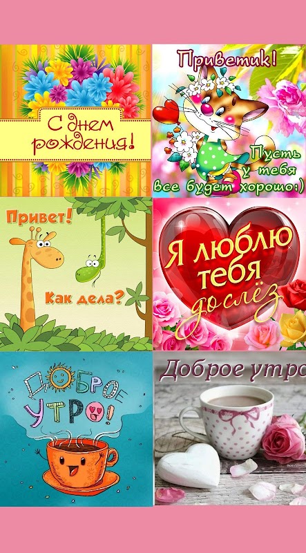 Живые открытки (доброе утро, привет, спасибо, хорошего дня, спокойной ночи, добрый вечер)