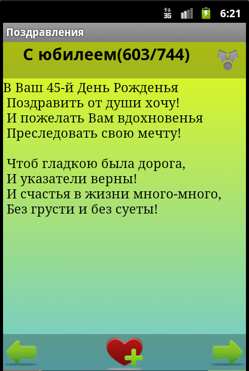 Это приложение включает в себя 10000 поздравлений и состоит из 57!!! различных категорий: