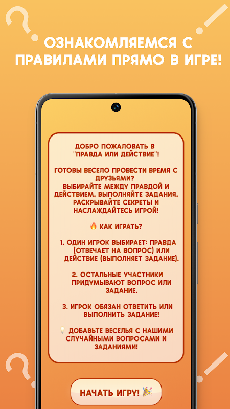 ✔ Гибкие настройки – можно выбрать только "Правду", только "Действие" 및 довериться случайному выбору.
