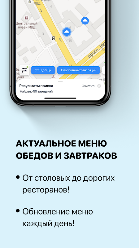 - хочешь найти завтрак, итальянскую кухню или обед до 5 руб? Воспользуйся фильтрами!